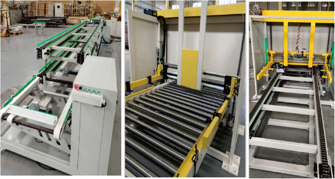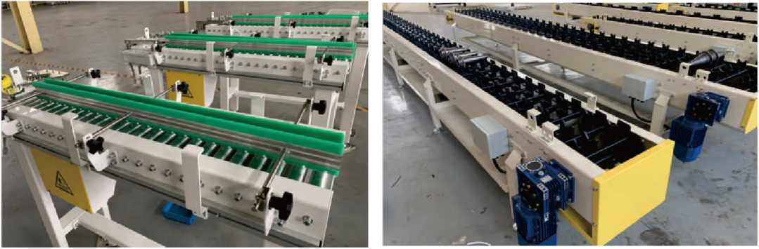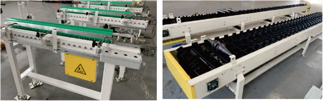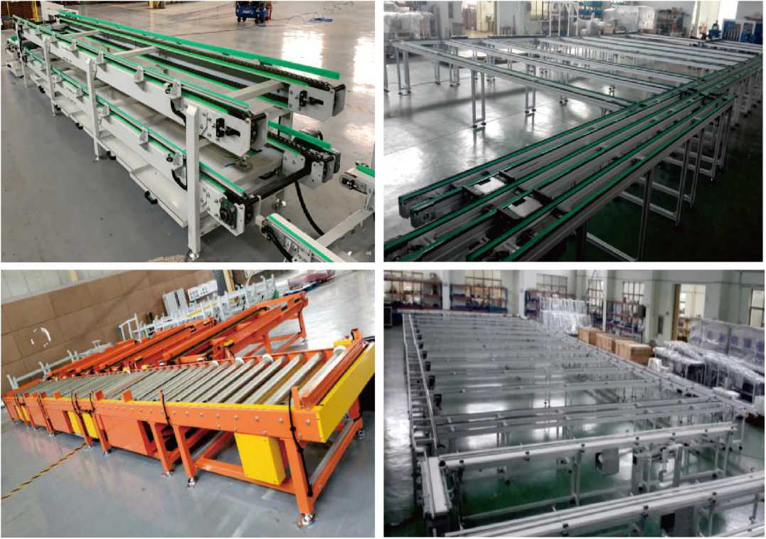 输送设备是以提高工作效率及产量;按照流水线的输送方式大体可以分为:皮带流水装配线、 板链线、倍速链、插件线、网带线、悬挂线及滚筒流水线这七类流水线。一般包括牵引件、承载构 件、驱动装置、涨紧装置、改向装置和支承件等组成。输送设备可扩展性高,可按需求设计输送 量,输送速度,装配工位,辅助部件(包括快速接头、风扇,电灯,插座,工艺看板,置物台,24V电源,风批等,因此广受企业欢迎;流水线是人和机器的组合,充分体现设备的灵活性,它将 输送系统、随行夹具和在线专机、检测设备有机的组合,以满足多品种产品的输送要求。输送线 的传输方式有同步传输的/(强制式),也可以是非同步传输/(柔性式),根据配置的选择,可以实现 装配和输送的要求。