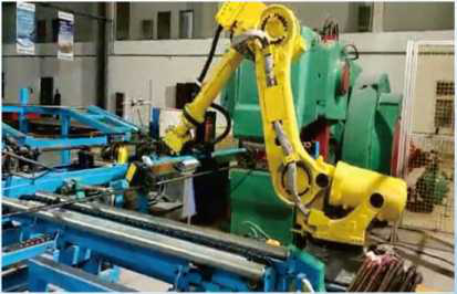 | 机器人突取棒料放入压机 |