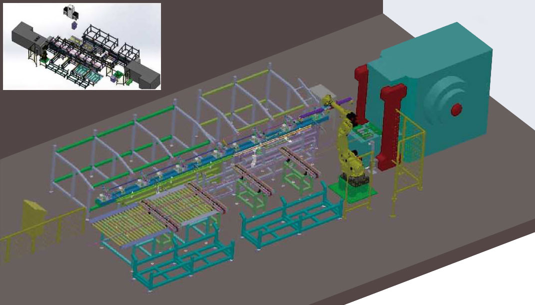 | 机器人将锻压好的棒料放到链条输送链机 |